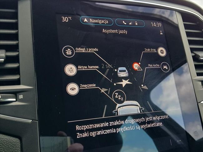 - System ostrzegania o nadmiernej prędkości, z funkcją rozpoznawania znaków drogowych (OSP/TSR)